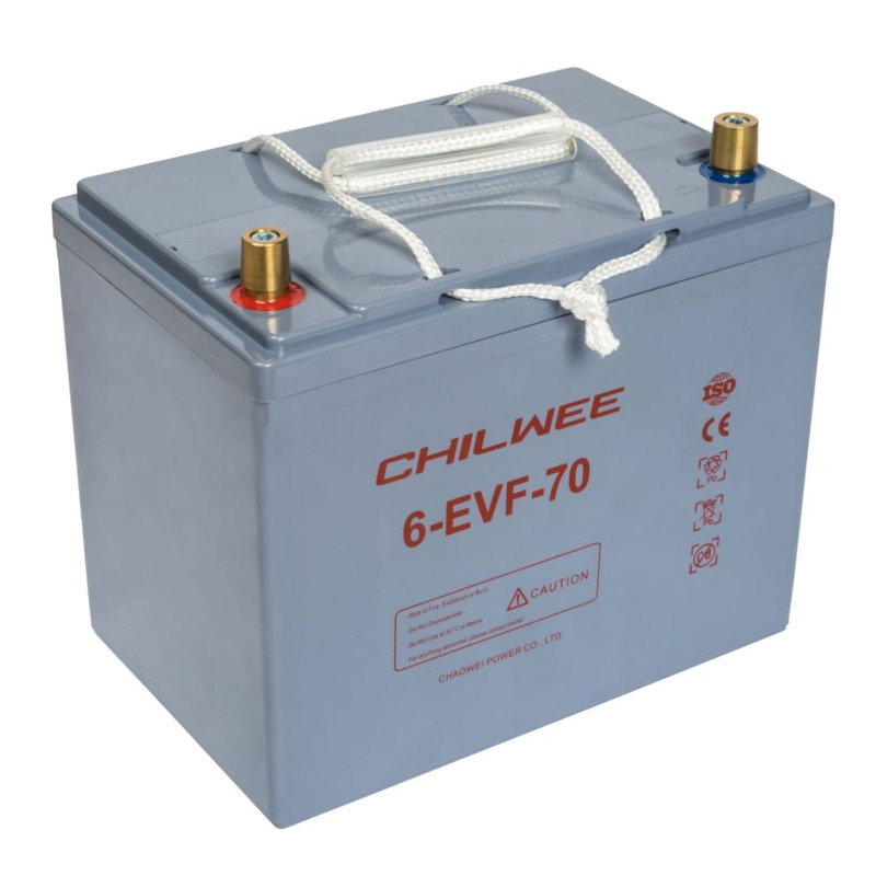 Тяговый аккумулятор Chilwee 6-EVF-70 (ёмкость 70 Ач (по C5), 12 В) с увеличенным сроком эксплуатации гарантирует стабильный зарядный ток и надежную работу. Данная серия использует специальный дымящийся силикагель в электролите и специальный гелевый сепаратор для предотвращения расслаивания электролита. Это может значительно увеличить срок службы аккумулятора и его экологическую пригодность. Прочный корпус и оптимизированная система защиты обеспечивают высокую надежность и безопасность даже в тяжелых условиях работ. Это экологически безопасный, без содержания кадмия, аккумулятор, который помогает сократить потребление энергии на 28,5% и воды на 90%, при этом исключая сброс отработанной жидкости.