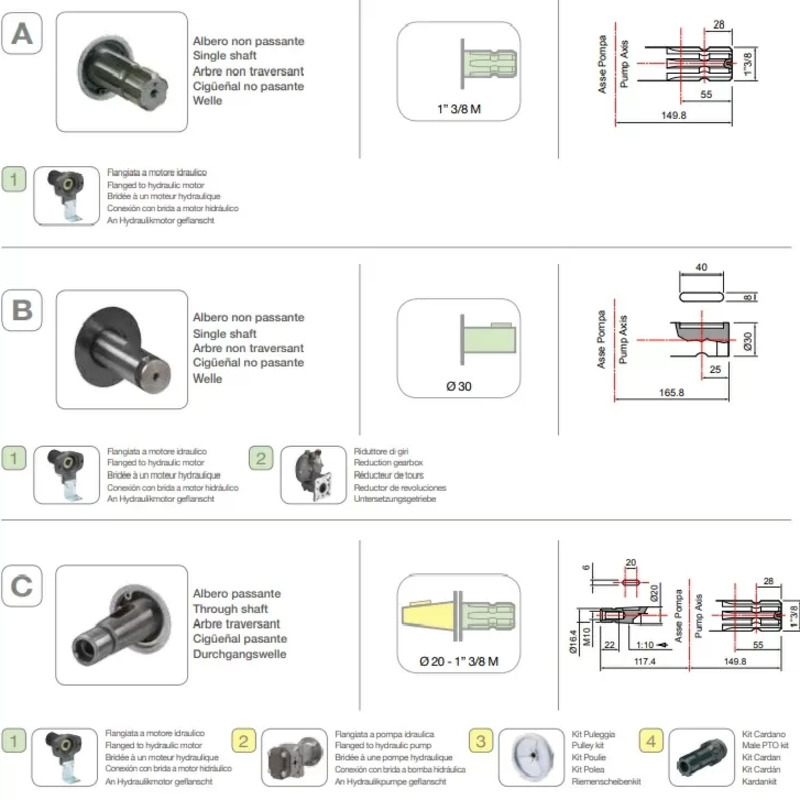 • Тип вала: d20 гладкий/шпонка - ВОМ 1"3/8