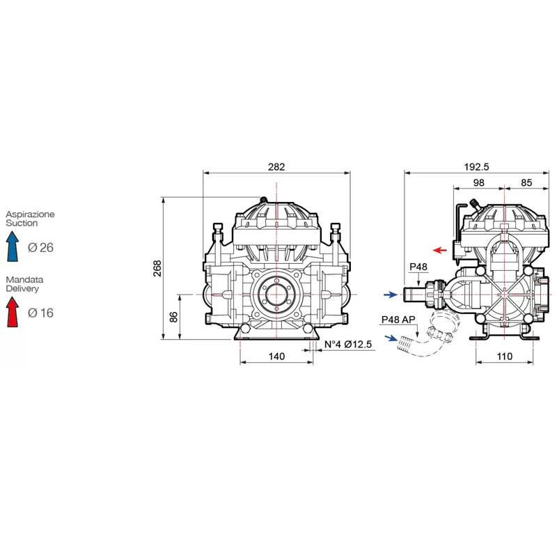 Насос мембранно-поршневой Comet P48 (52,6 л/мин; 30 бар)