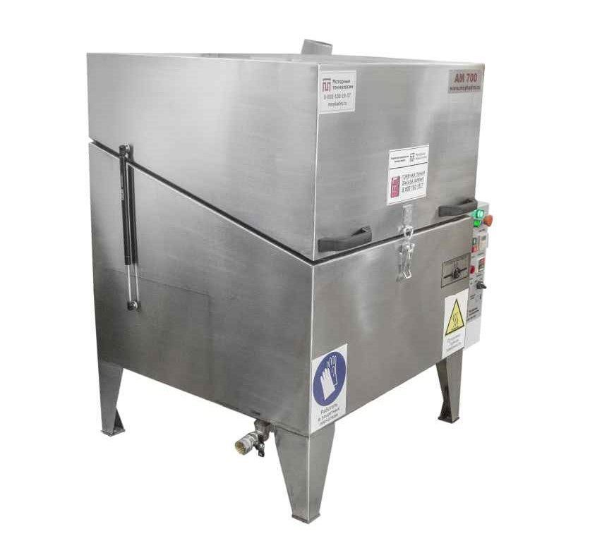 Серия AM700 LK мощностью 4,2 кВт оснащена баком из нержавеющей стали AISI 304 толщиной 2 мм и объёмом 80 литров, корзиной грузоподъёмностью 120 кг, электромеханическим приводом вращения корзины, цифровой системой контроля температуры, цифровым реле времени и системой аварийного останова.