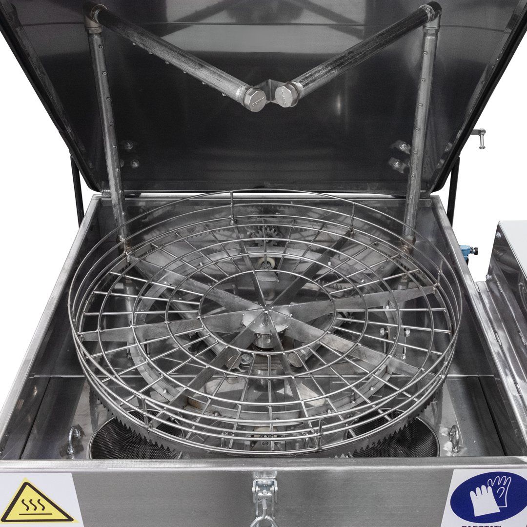 Серия AM800 AK комплектуется эффективным электромеханическим приводом вращения корзины, насосом мощностью 2,2 кВт, нагревательным элементом мощностью 3х1,5 кВт, баком из нержавеющей стали толщиной 2 мм и объёмом 120 литров, корзиной грузоподъёмностью 250 кг, цифровой системой контроля температуры, цифровым реле времени и системой аварийного останова.