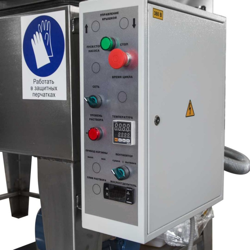 Модель данной системы очистки работает с моющими средствами, обладающими слабощелочной силой, что гарантирует безопасность и эффективность процесса очистки. Для подогрева раствора используются высококачественные трубчатые электронагреватели, выполненные из нержавеющей стали. Регулировка температуры и времени очистки осуществляется путем использования интуитивно понятной панели управления. Подача раствора осуществляется пистолетом с давлением 9 бар, обеспечивая высокоэффективное и точечное удаление загрязнений. По окончании работы, раствор и вода из детали легко удаляются при помощи пистолета сжатым воздухом, который удобно подключается к компрессору. Кроме того, данная установка оснащена фильтром грубой очистки, который надежно защищает насос от возможных повреждений и обеспечивает длительный срок его службы.