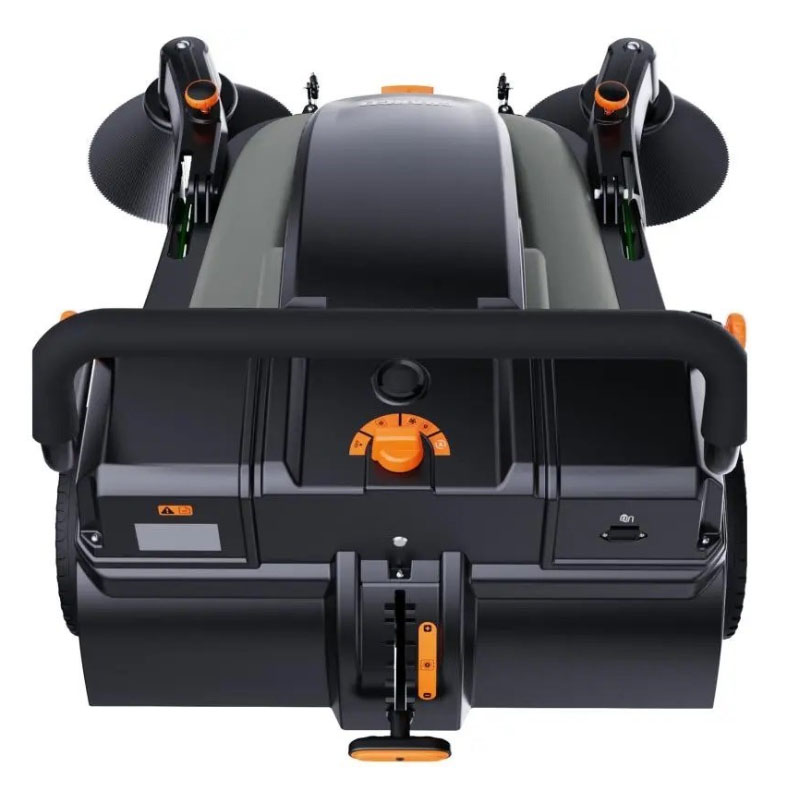 Устройство работает от аккумуляторов на 24 В (25 А·ч), отличается низким уровнем шума и не выделяет выхлопов. За счёт складной конструкции и эргономичных подлокотников техника легко транспортируется и не требует много места для хранения. Оптимальное решение для ежедневной и сезонной уборки на открытом воздухе.