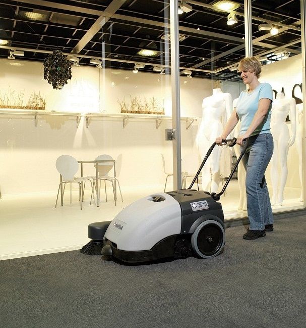 Nilfisk SW 750 - аккумуляторная подметальная машина способная пройти, где угодно, и подходит для уборки любых мест (от зон розничной торговли до автозаправочных станций).