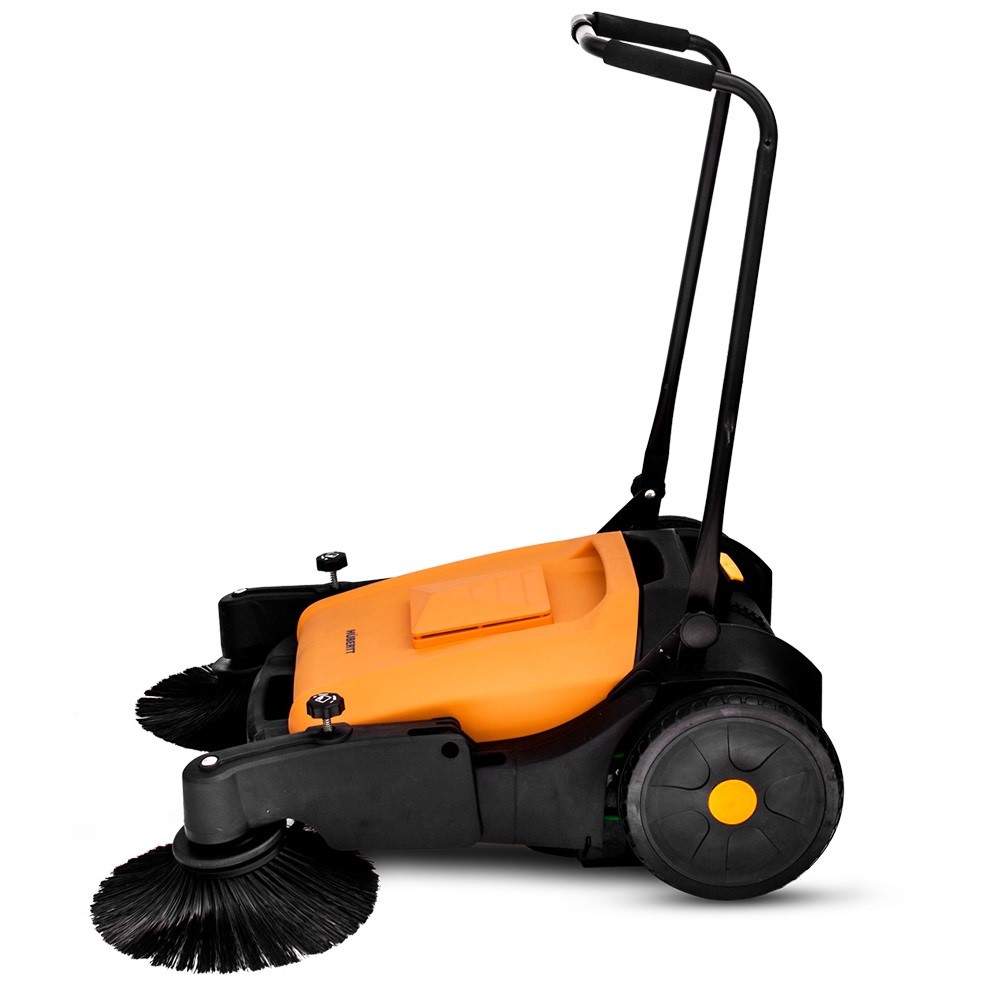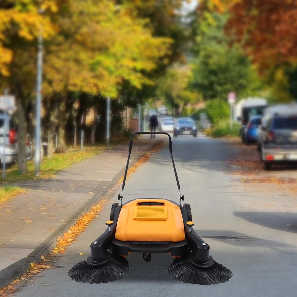 MS980-AT2 отличается новым дизайном, простотой в использовании, соответствует общемировой тенденции снижения выбросов углерода и способен повысить эффективность уборки в 4–6 раз. Она особенно подходит для уборки улиц, жилых зон, парков, дворов, школы, мастерские, склады и большие места деятельности. Не требует электроэнергии, и пользователь может легко утилизировать мусор, толкая его вперед.