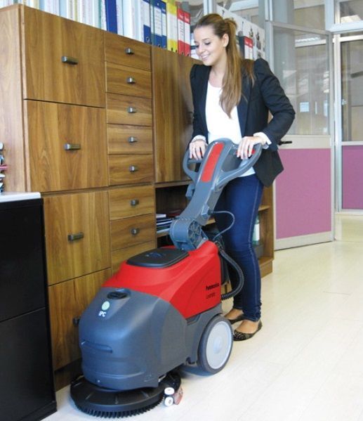 Поломоечная машина Portotecnica Lavamatic 15 C 35 мощностью 1700 Вт, весом 37 кг, компактными размерами и производительностью 1300 м2/ч, работающая от сети, отличается маневренностью и легковесностью, что значительно упрощает работу с ней. уборочная машина имеет удобную ручку, которая регулируется по высоте, под любой рост работника. Несмотря на отсутствие привода на колеса, с аппаратом легко работать, вес машины менее 60 кг, а вращение щетки тянет машину вперед. Большие колеса изготовлены из прорезиненного материала, имеют легкий ход и не оставляют следов на вымытом полу.