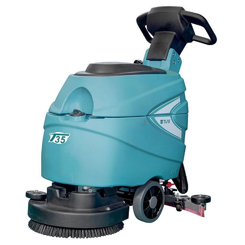 TVX T35E - сетевая поломоечная машина специально разработана для небольших супермаркетов, больниц, детских школ и прочих объектов с площадями до 2.000 м2 и большой заставленностью. Компактные размеры машины позволяют ей проезжать в узкие дверные проемы, транспортировать с этажа на этаж на лифте, проезжать между стеллажами. Не большой размер обеспечивает высокую маневренность.