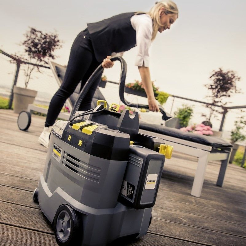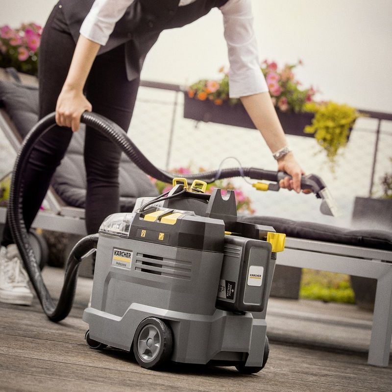 Karcher Puzzi 9/1 Bp Pack - аккумуляторный моющий пылесос профессионального назначения, позволяющий очищать мягкую мебель и другие текстильные поверхности в любое время и в любых местах, вне зависимости от наличия возможности подключиться к электросети. Входящий в комплект его поставки мощный аккумулятор Karcher Battery Power+ напряжением 36 В обеспечивает неограниченный радиус действия. В процессе уборки разбрызгиваемый под давлением раствор чистящего средства проникает вглубь текстильного материала и сразу же всасывается вместе с отделяемой от волокон грязью.