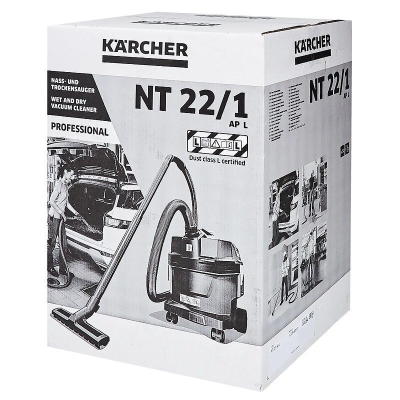 Karcher NT 22/1 Ap L - компактный, мощный, надежный, очень универсальный и легкий пылесос для влажной и сухой уборки. Эта модель обеспечивает впечатляющие результаты при решении незначительных и умеренных задач связанных с уборкой в широком спектре коммерческих областей применения. Благодаря полуавтоматической системе очистки фильтра и влагостойкому патронному фильтру из полиэфирного шелка PES, он может легко справляться с пылью, мелким мусором и жидкостью без особых усилий.