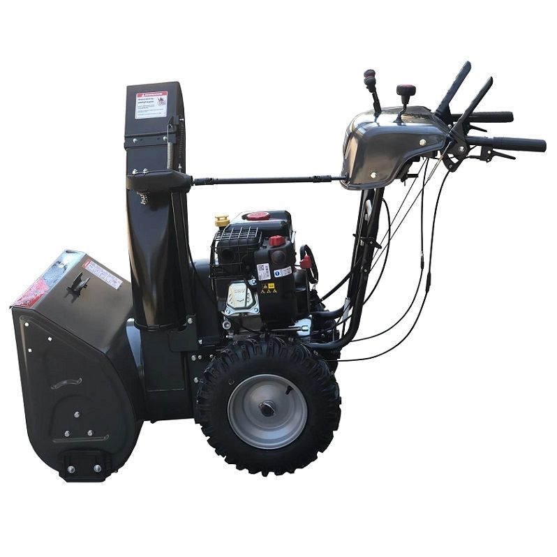 Управление осуществляется рычагом на панели - 6 скоростей вперед и 2 скорость назад дают возможность оператору подобрать скорость под различные условия работы в зависимости от количества выпавшего снега. Предусмотрена центральная светодиодная фара для удобства работы в любых погодных условиях и времени суток. Электрический запуск кнопкой обеспечивает быстрый и легкий пуск снегоуборщика до -30°С.
