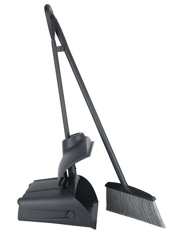 Совок для мусора и щётка AF01205A - комплект из пластика, представляют собой комплект из совка для мусора и щётки с длинными ручками, которые позволяют без нагибания производить уборку механического мусора щёткой в совок и предназначены для уборки торговых площадей объектов торговли различного формата. Крышка открывается при установке совка на пол для заметания мусора