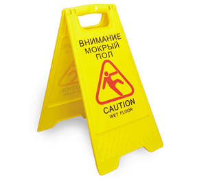 Двойная пластиковая основа желтого цвета с изображением специального знака и надписи на русском языке.